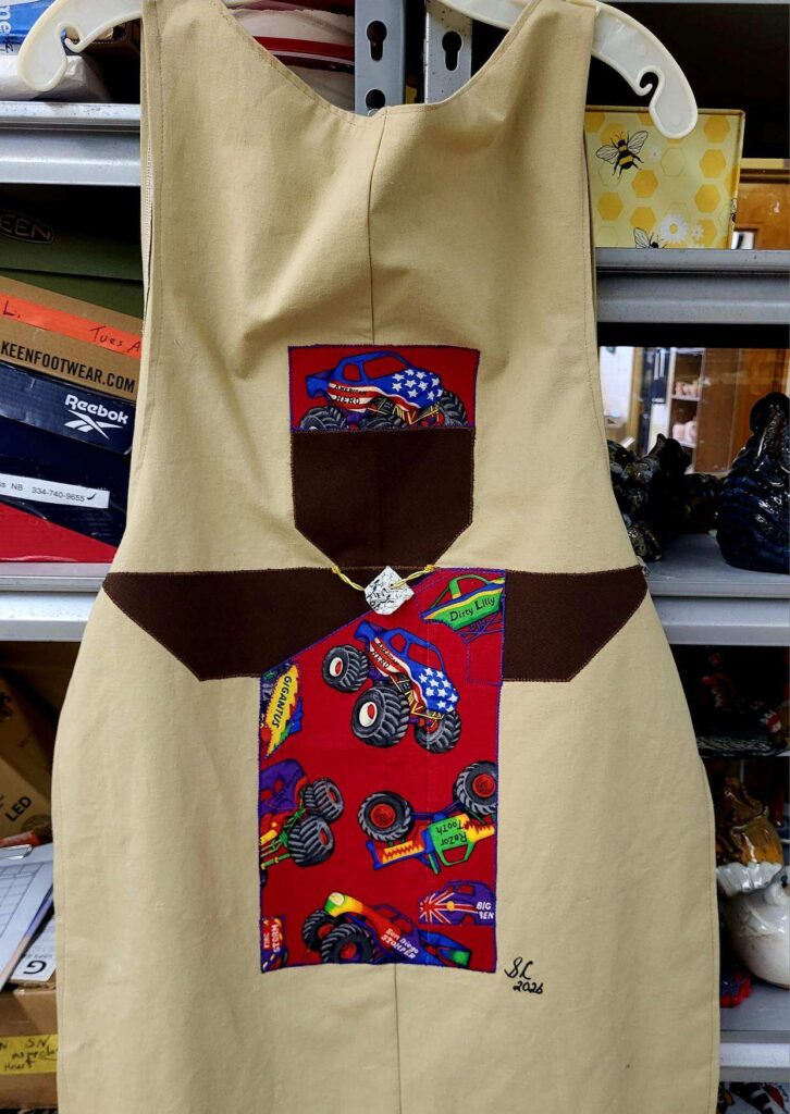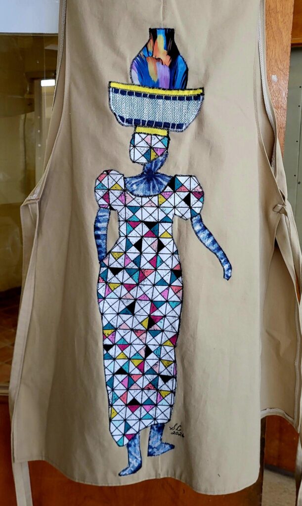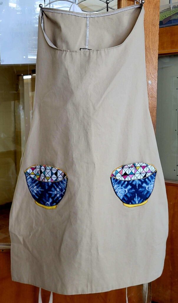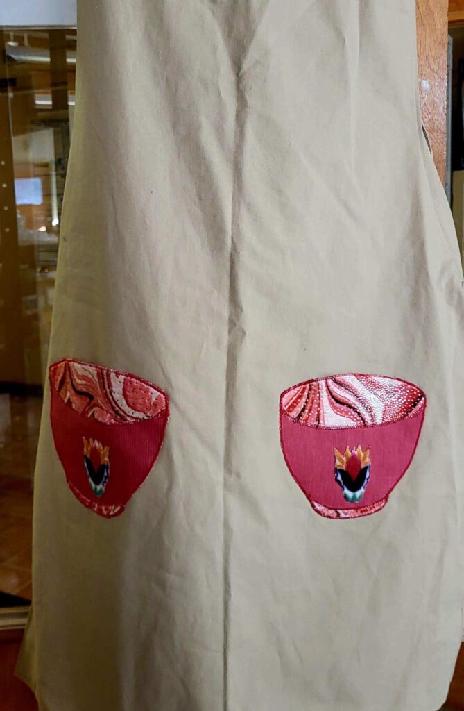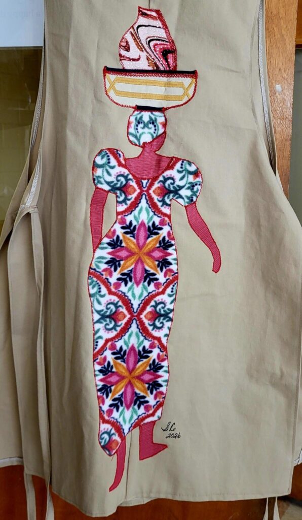 Sharon Chambers “Daughter of the King Quilter” Phenix City appliqued aprons. Aprons made by Dian Sutton.