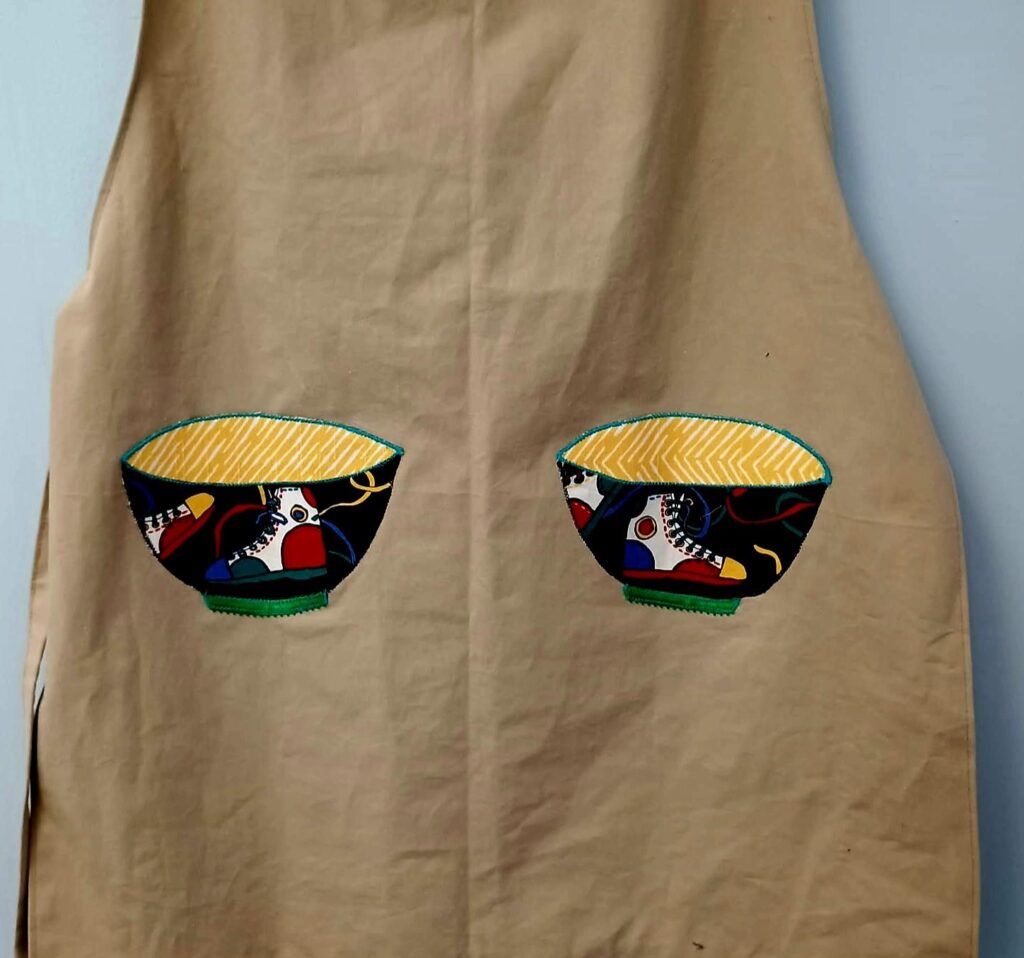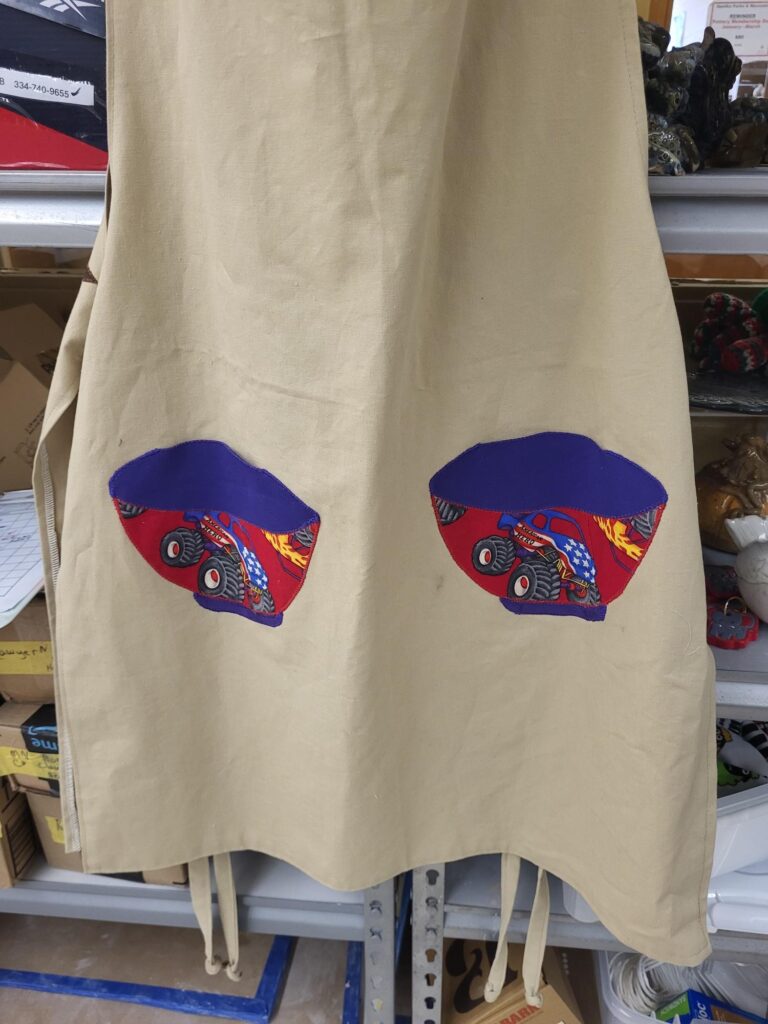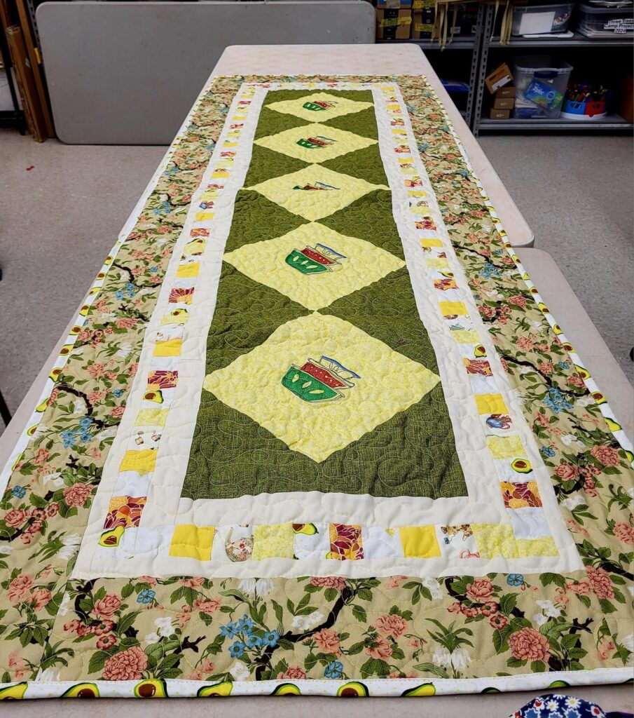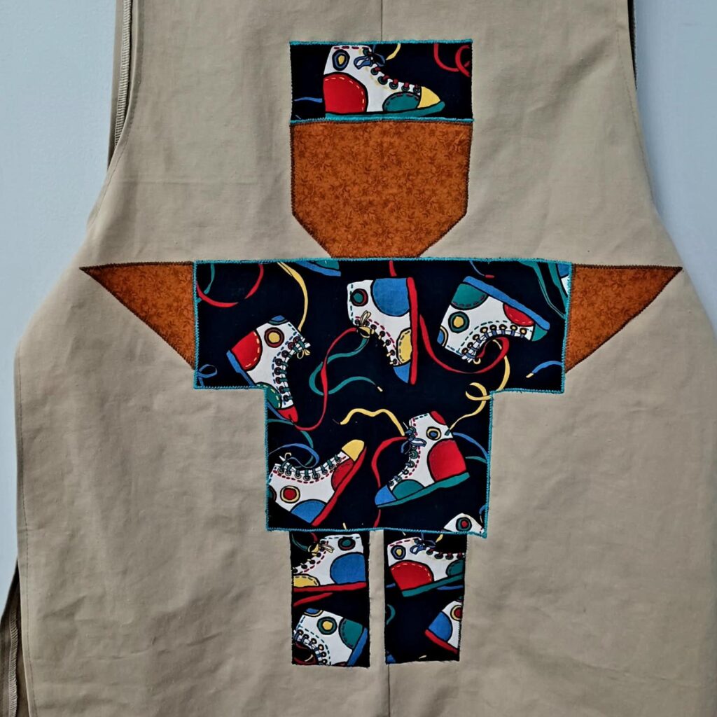 Sharon Chambers “Daughter of the King Quilter” Phenix City appliqued aprons. Aprons made by Dian Sutton.